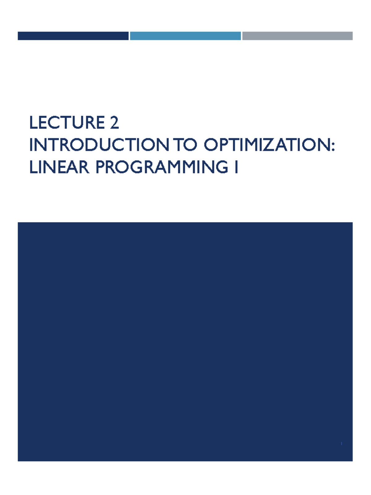 LECTURE 2: INTRODUCTION TO OPTIMIZATION - LINEAR PROGRAMMING I - Studocu