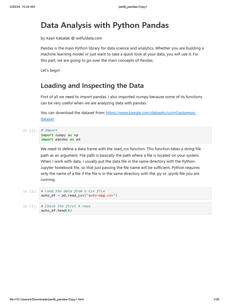 Data Analysis with Python Pandas | PDF