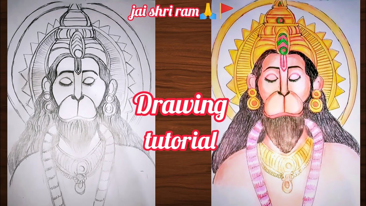 Lord Hanuman Drawing, How to draw Hanuman Ji, Tutorial - YouTube