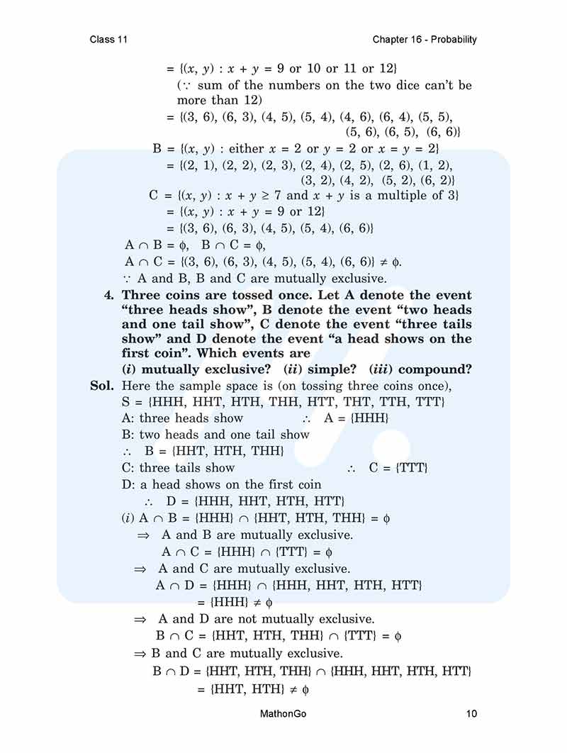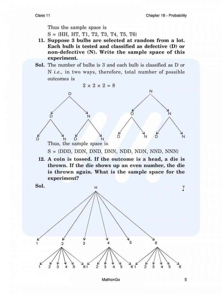 NCERT Solutions For class 11 Maths Chapter 16 Probability