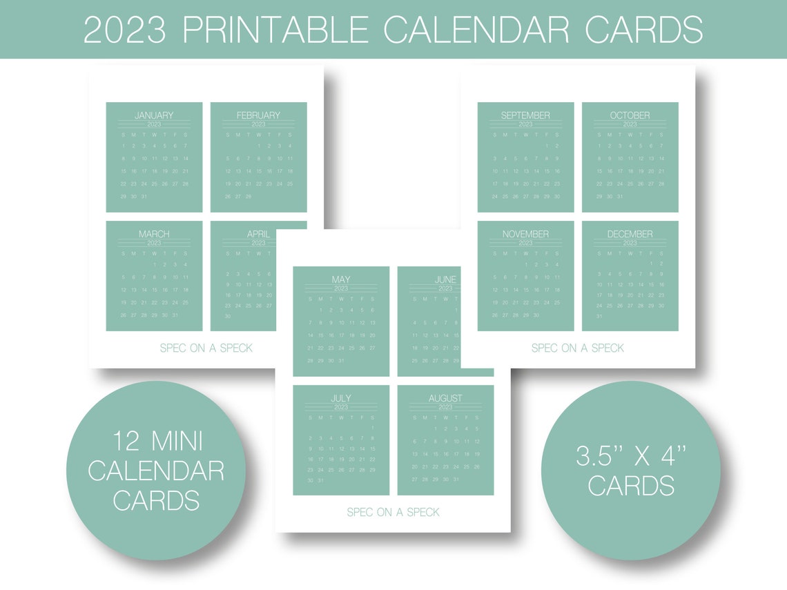 Printable 3.5x4 Calendar Cards for 2023 Mini Calendars 2023 Mini Desk ...