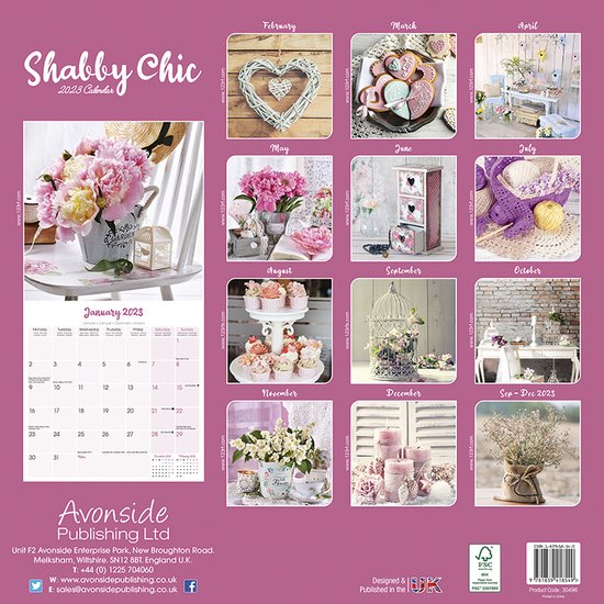 Calendar de perete 2023 - Slim - Shabby Chic - Avonside Publishing Ltd