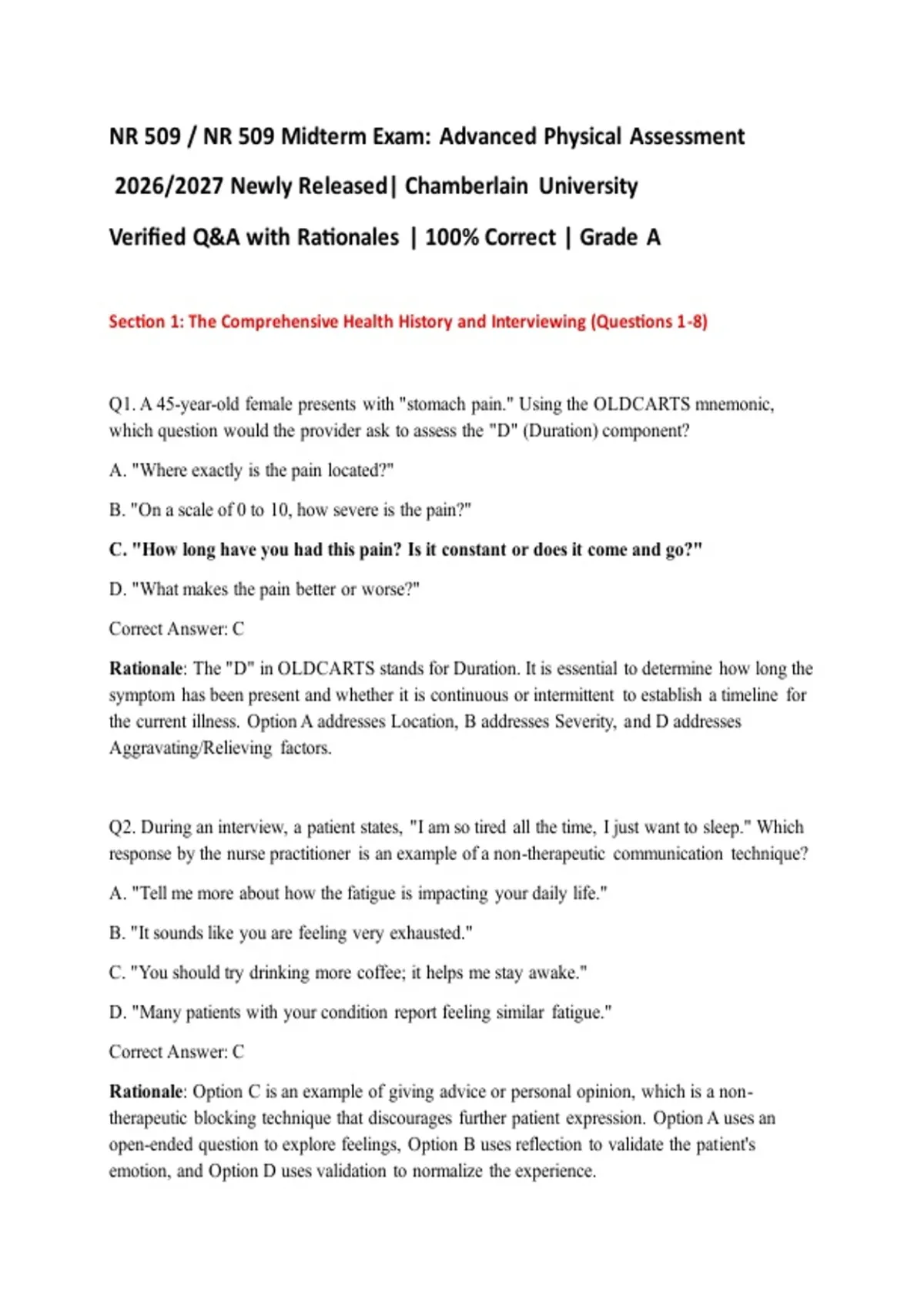 NR 509 / NR509 Midterm Exam: Advanced Physical Assessment 2026/2027 ...