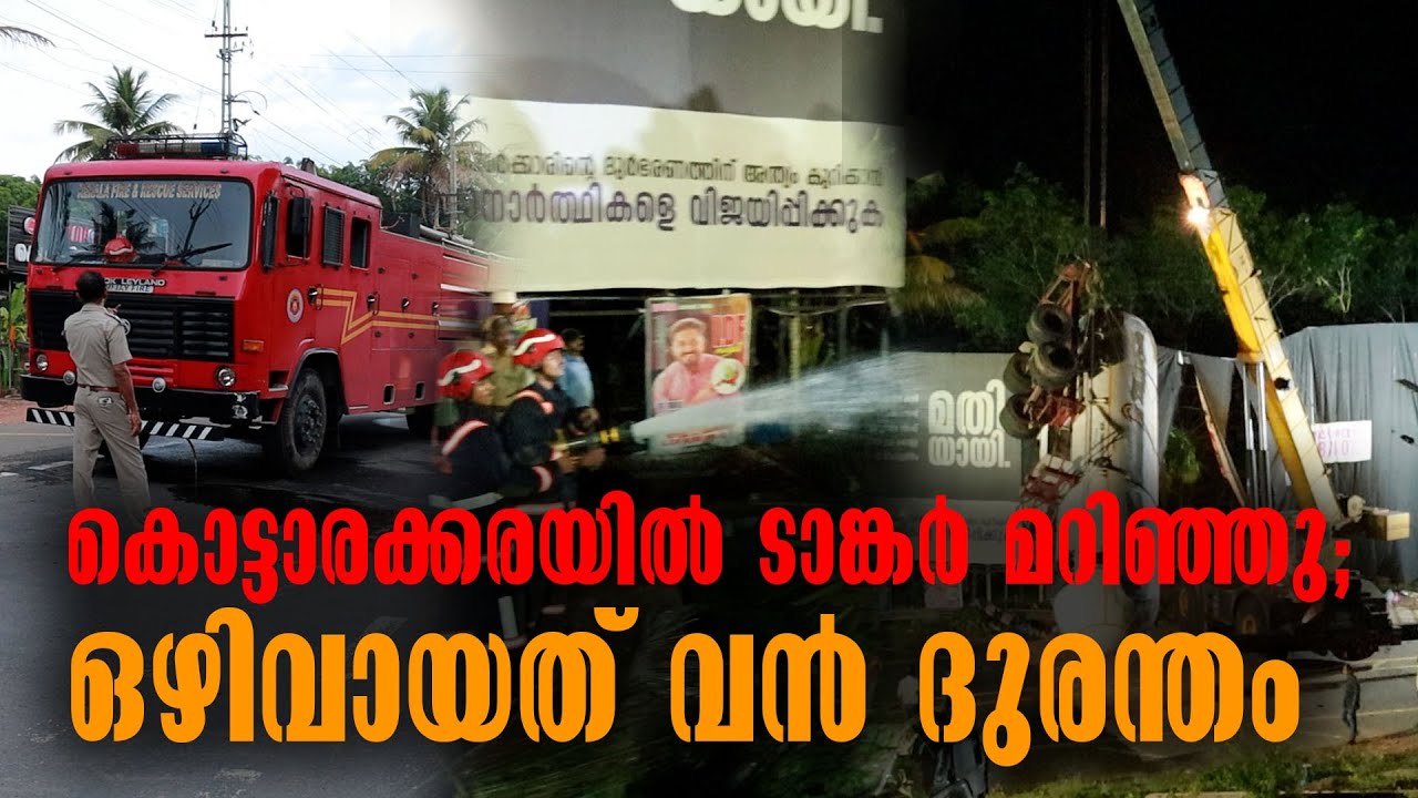 Kottarakkara | Accident | കൊട്ടാരക്കരയിൽ ടാങ്കർ മറിഞ്ഞു; ഒഴിവായത് വ ...