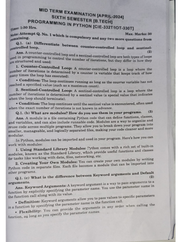 Previous Year's Solutions of Python programming | BCA | MCA | BTECH | # ...