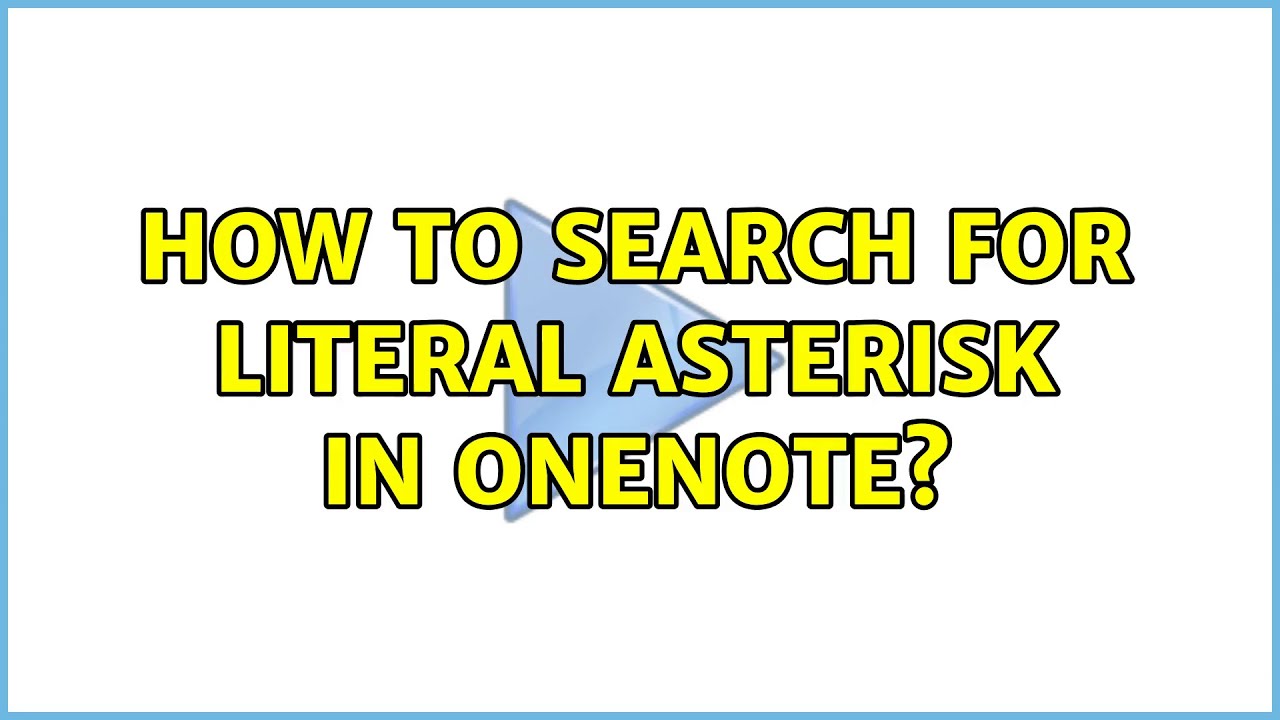 How to search for literal asterisk in OneNote? (2 Solutions!!) - YouTube
