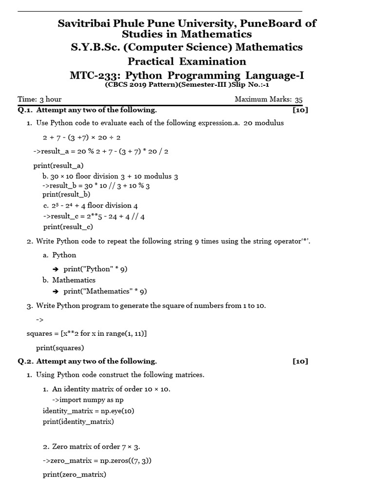 MTC-233 Python Programing Language I Slips Semester III ANSWER | PDF ...