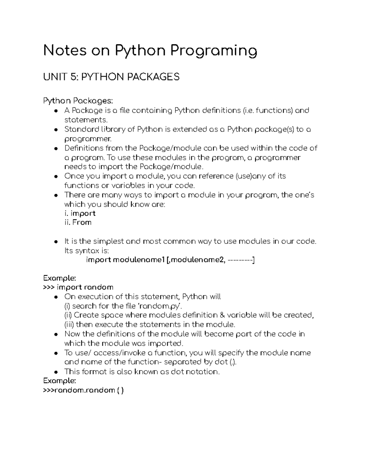 UNIT-5 Notes - PYTHON - Notes on Python Programing UNIT 5: PYTHON ...