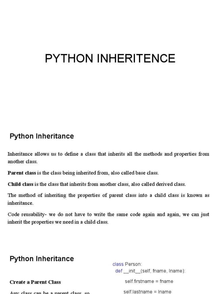Based on this image's title: “Python Inheritence | PDF | Inheritance (Object Oriented Programming ...”