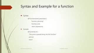 Python programming - Functions and list and tuples | PPTX
