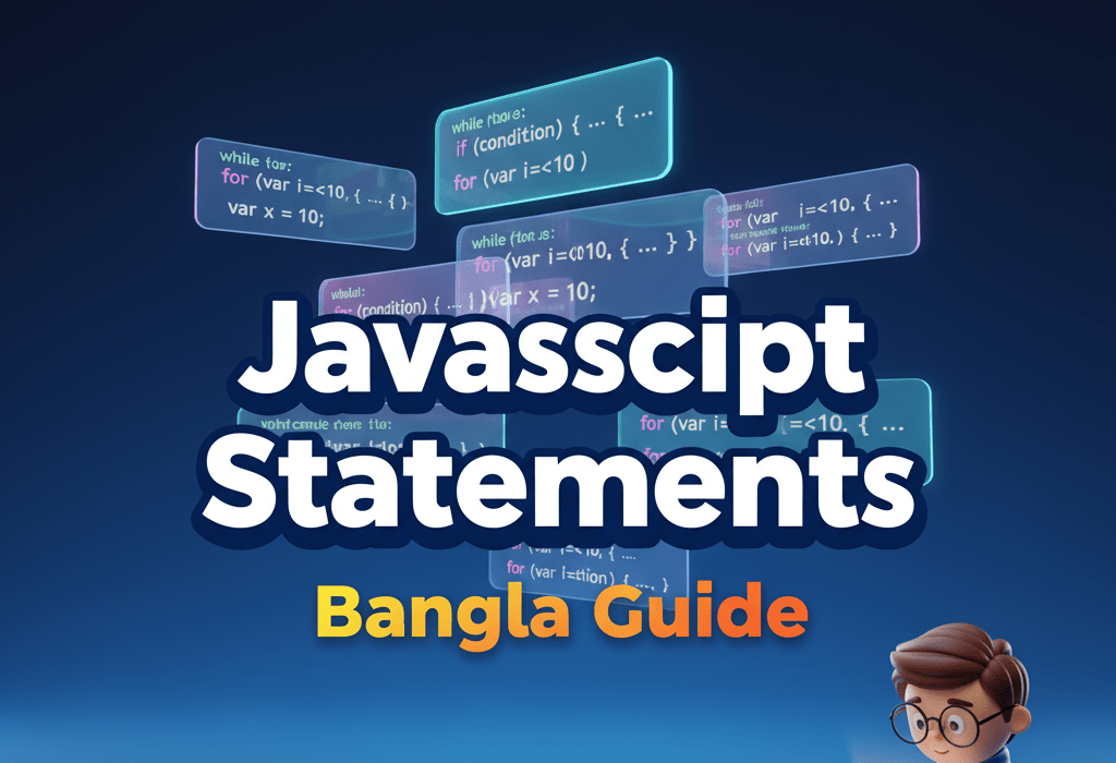 Based on this image's title: “JavaScript Statements বাংলা - সম্পূর্ণ টিউটোরিয়াল ২০২৫”