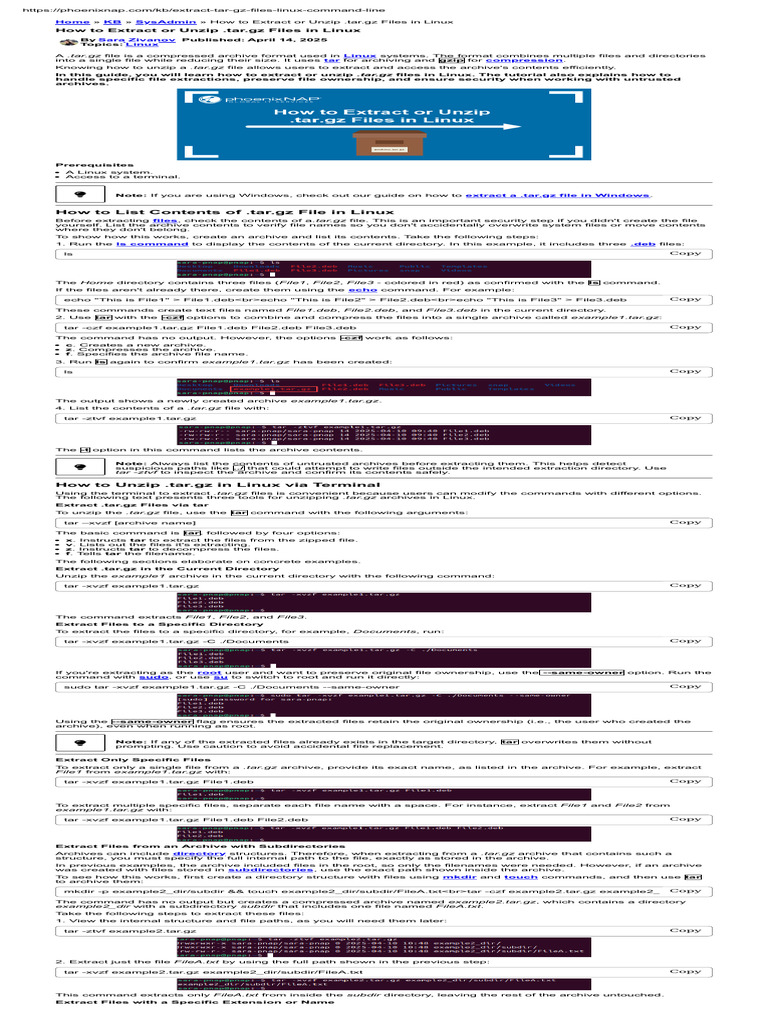 How To Extract or Unzip Targz Files in Linux - PhoenixNAP KB | PDF ...