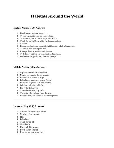 Habitats Around The World Activity - Benchmark U1, CA - 2nd Grade ...