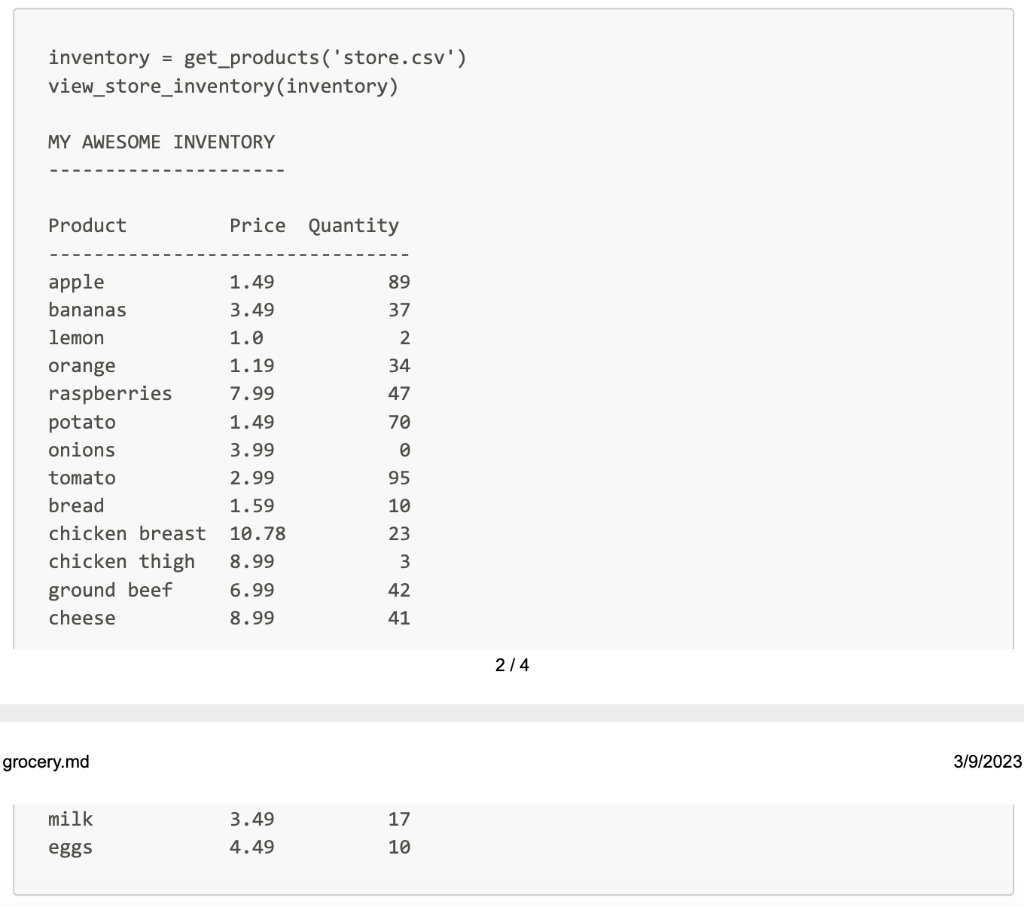 Python A Day at the Supermarket | Muhammad Hassan's ePortfolio