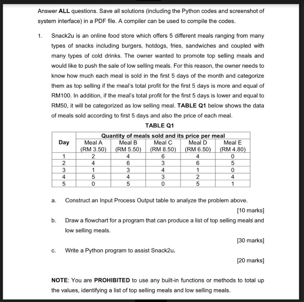 Solved Question 2 (2 Marks): - Write a python program for a | Chegg.com