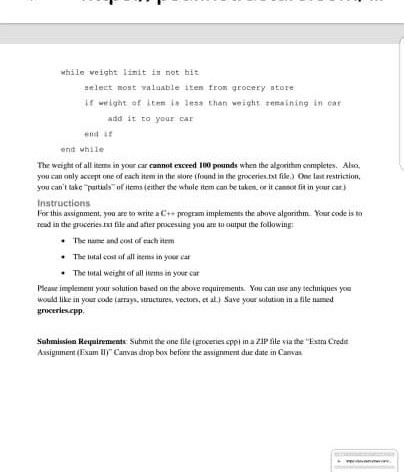 Solved Part III: Grocery Shopping (20 points) Write a | Chegg.com