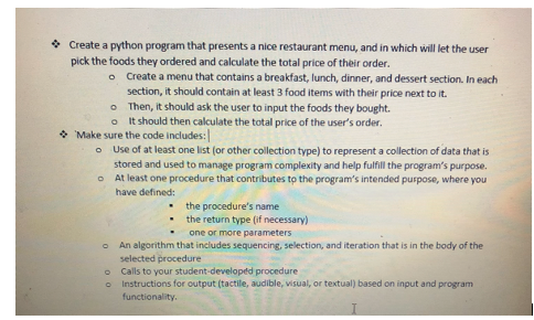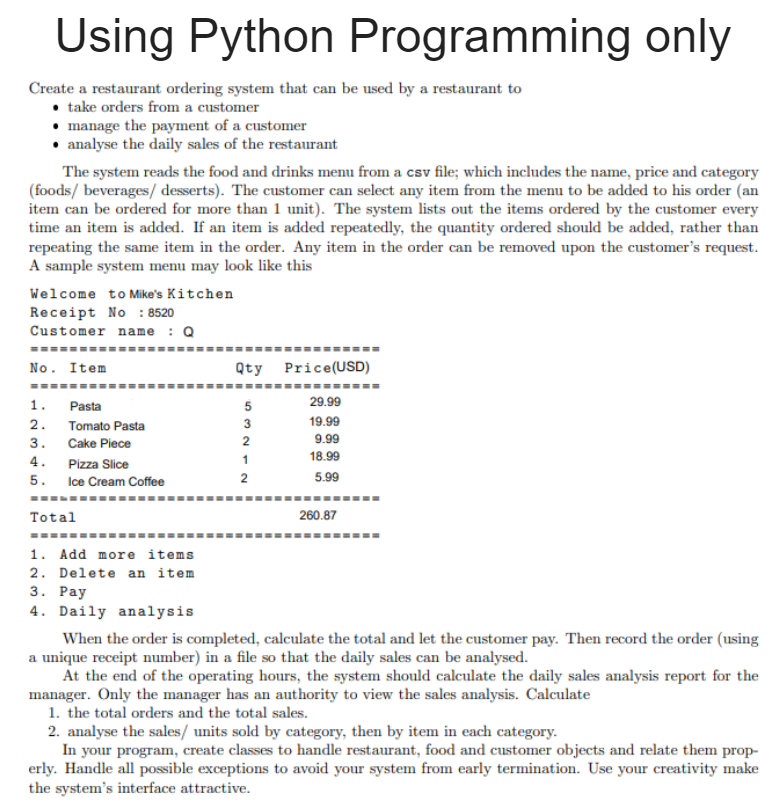 Solved Using Python Programming only Create a restaurant | Chegg.com