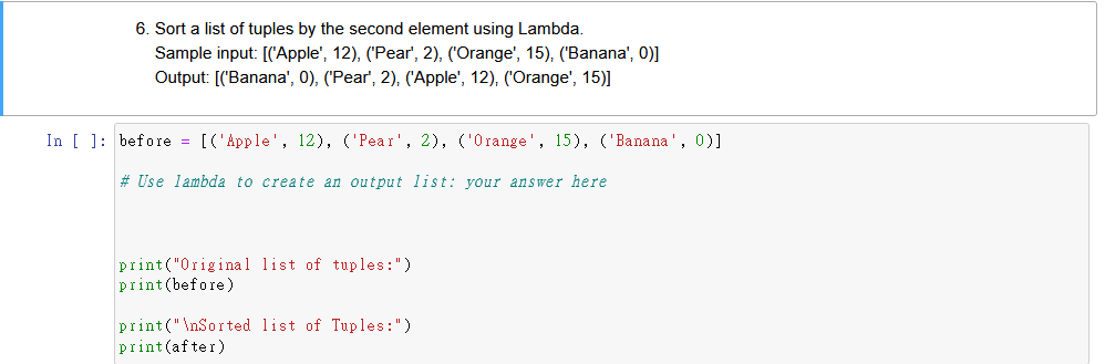 Solved 6. Sort a list of tuples by the second element using | Chegg.com