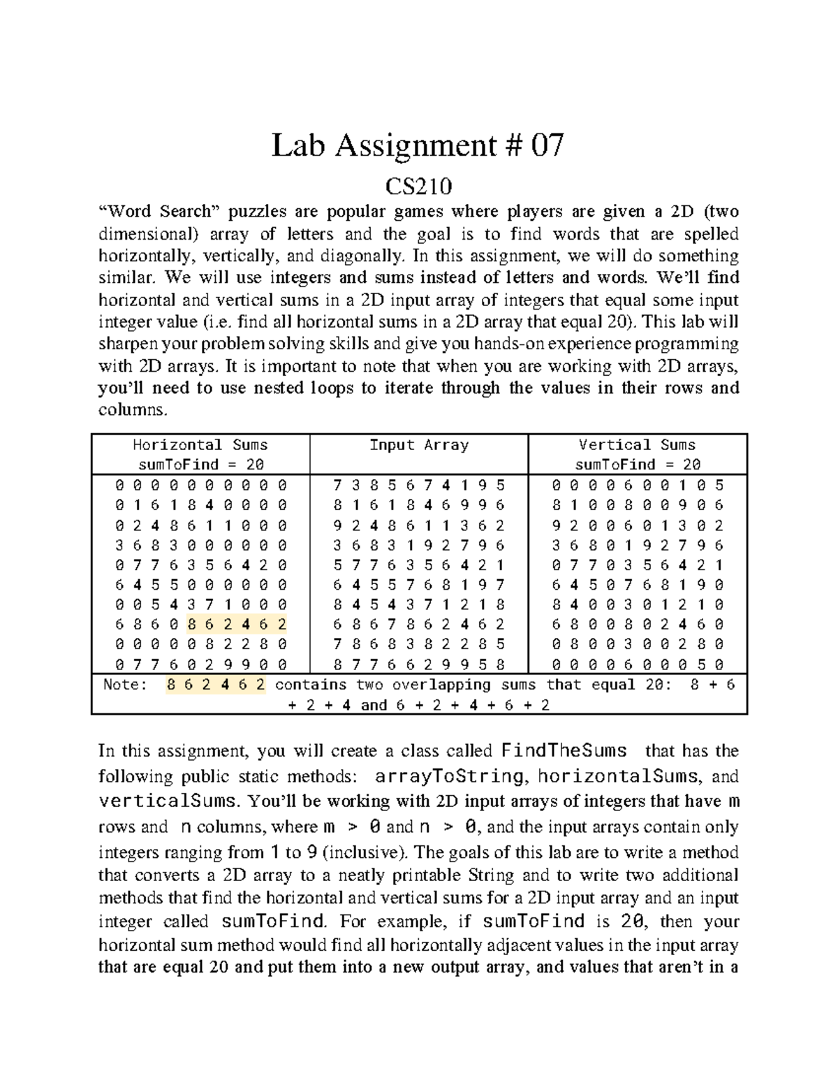 Lab Assignment 07: Finding Horizontal & Vertical Sums in 2D Arrays ...