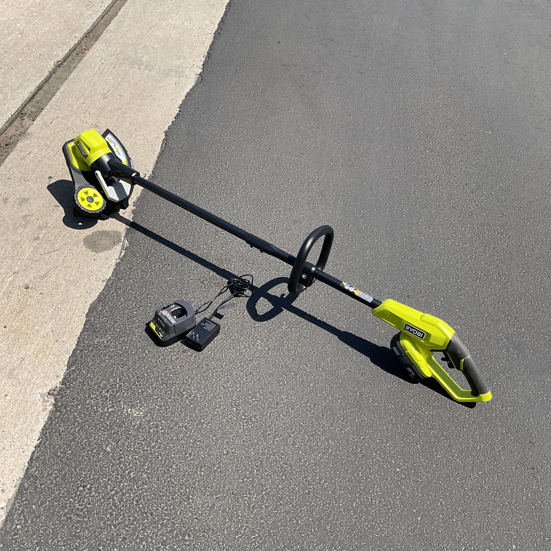Based on this image's title: “RYOBI ONE+ 18V 13 in. Cordless Battery String Trimmer/ Lawn Edger with ...”