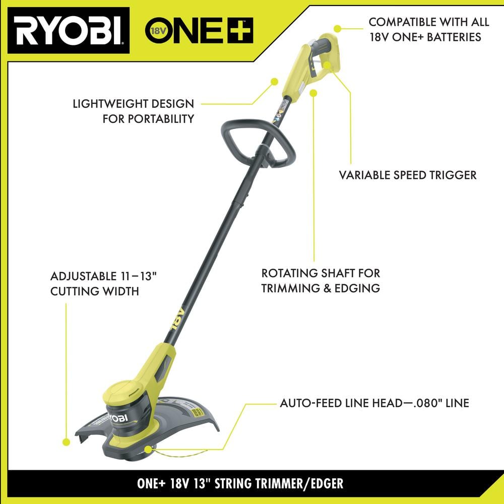 RYOBI ONE+ 18V 13 in. Cordless Battery String Trimmer/ Edger with Extra ...
