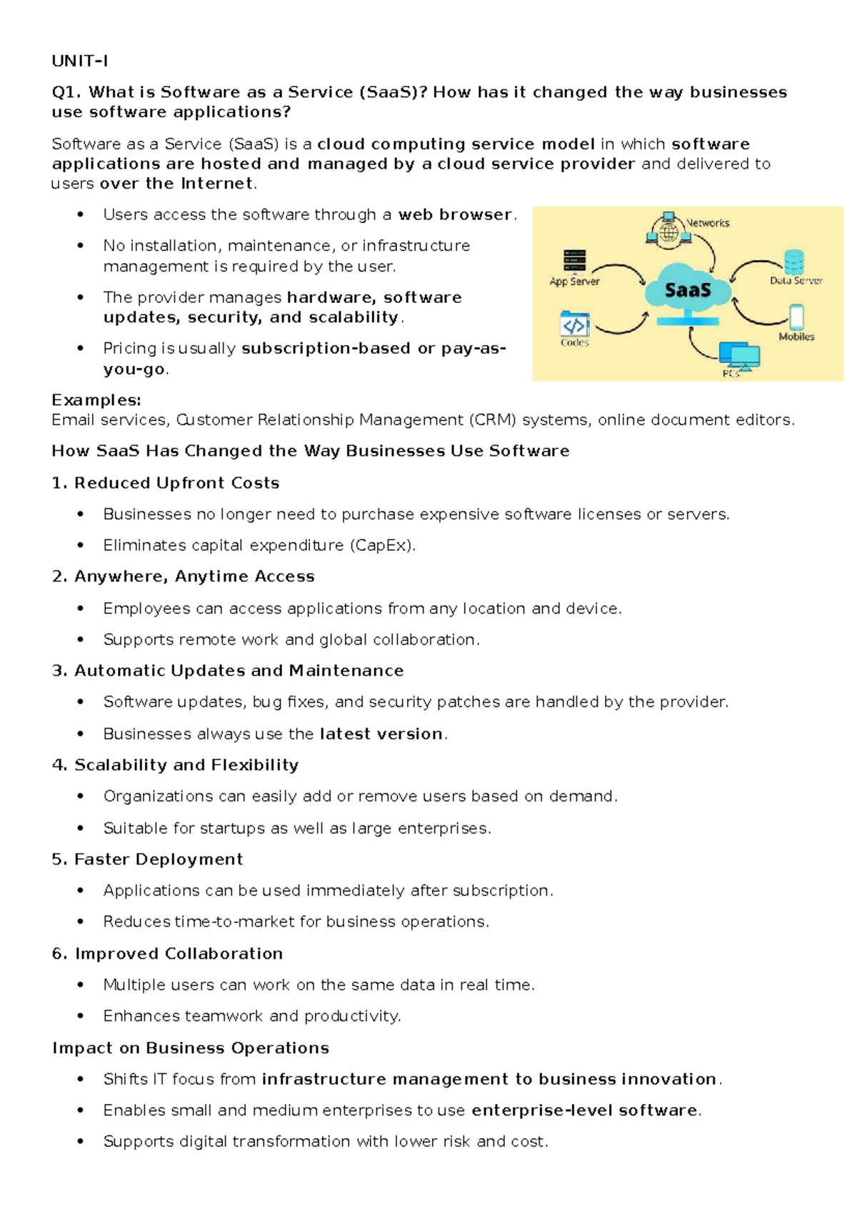 CC-Unit-1 Notes: Introduction to Cloud Computing Architecture - Studocu