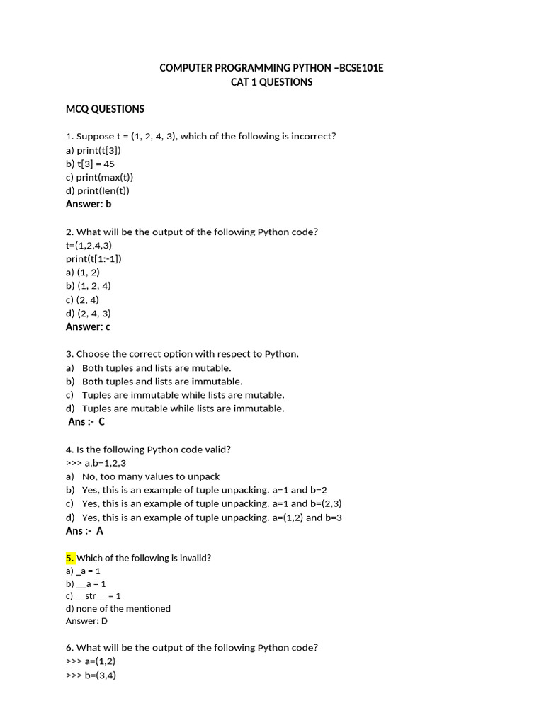 Python Questions and Answers Lists 3 | PDF | Computer Programming ...