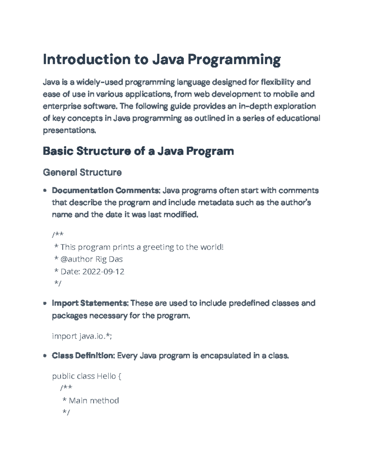 Java Programming Fundamentals: Key Concepts and Syntax - Studocu