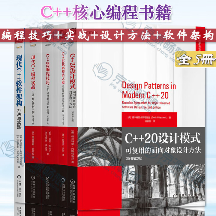 《C++5册 现代C++编程实战+C++20代码整洁之道 可持续软件开发模式实践+C++20设计模式:可复用的面向对象设计方法+C++20编程 ...