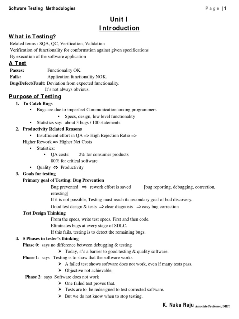Unit1 Notes | PDF | Software Testing | Quality Assurance