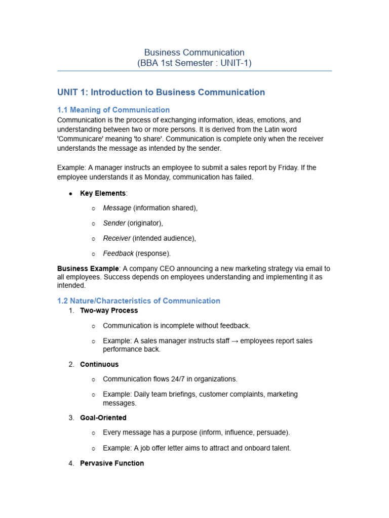 Business Communication Notes Unit1 Enhanced | PDF | Communication | Code