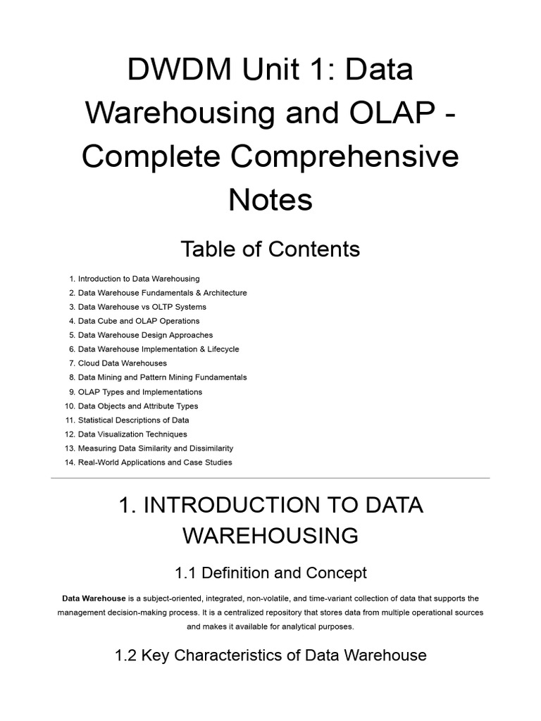 DWDM-Unit1-Complete | PDF | Data Warehouse | Computing