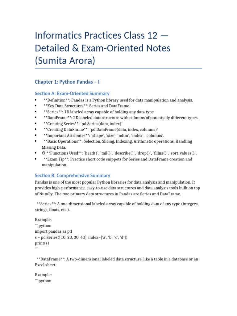 Informatics Practices Class12 SumitaArora Notes Unit1 Unit2 | PDF | Sql ...