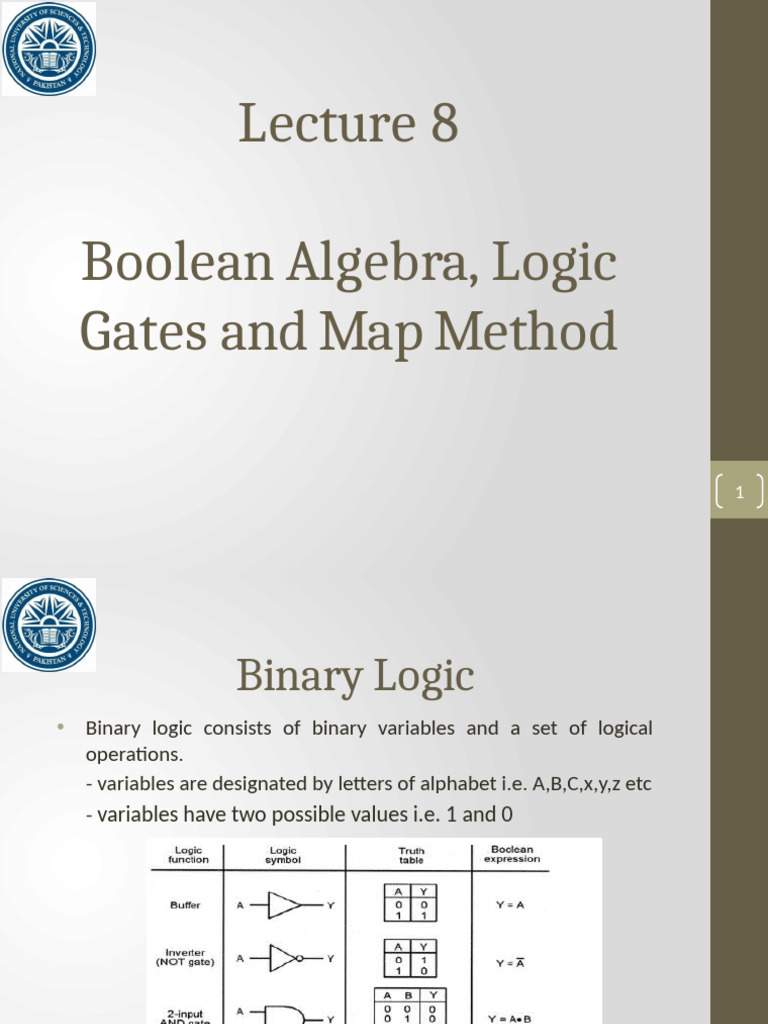 Lecture 8 - Boolean Algebra and Logic Gates | PDF | Boolean Algebra ...