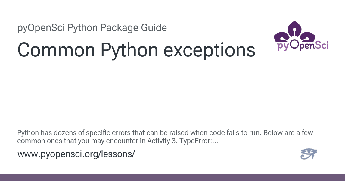 4. A quick Python introduction: part 4, Exceptions — Learn Python with ...