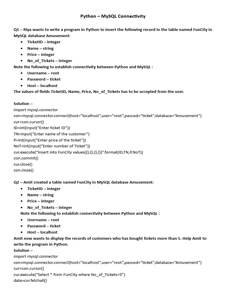 CS PRAC Programs: Integrating MySQL with Python and File Handling - Studocu