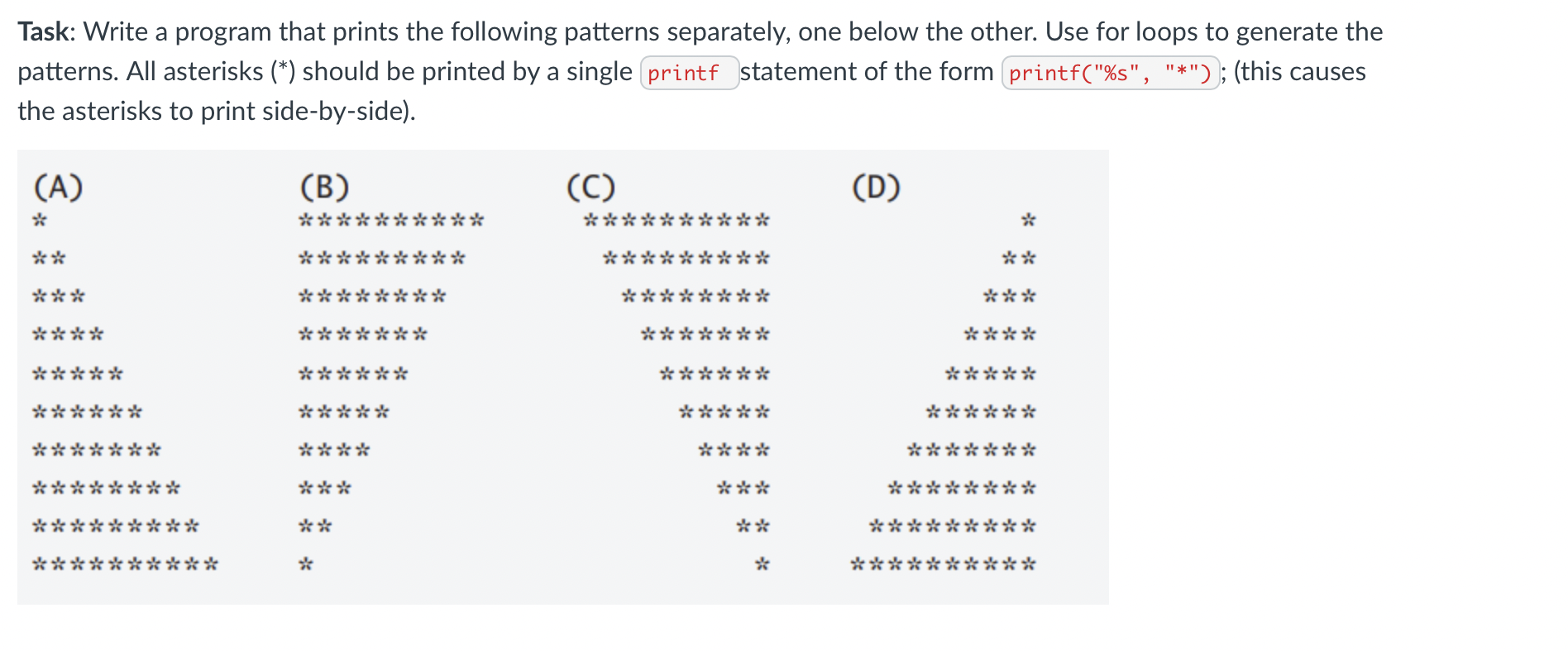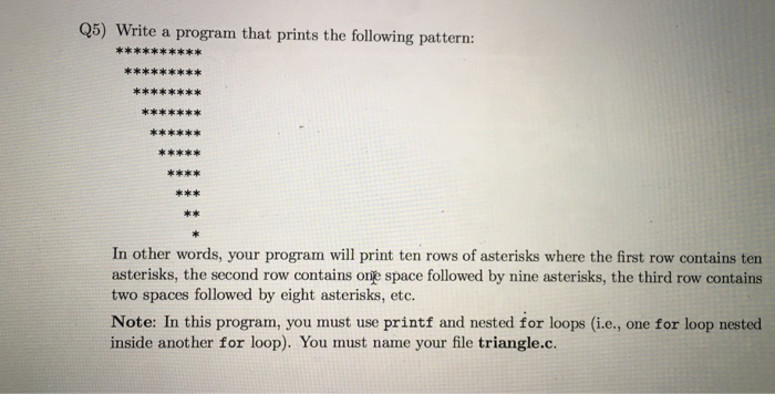 Solved Write a C program to print the following pattern. The | Chegg.com