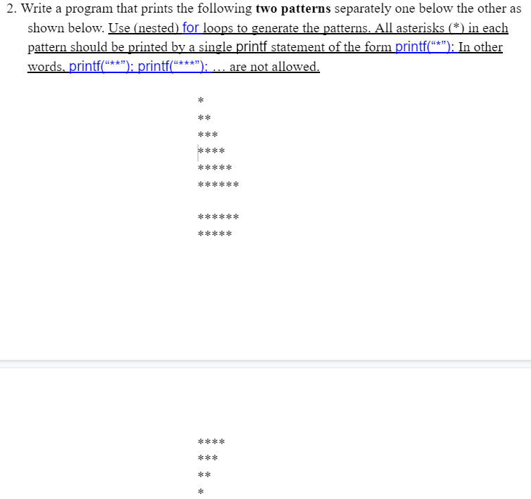 Solved 2. Print the following pattern: | Chegg.com
