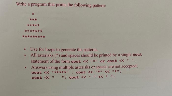 Solved Write a program that outputs the pattern shown below, | Chegg.com