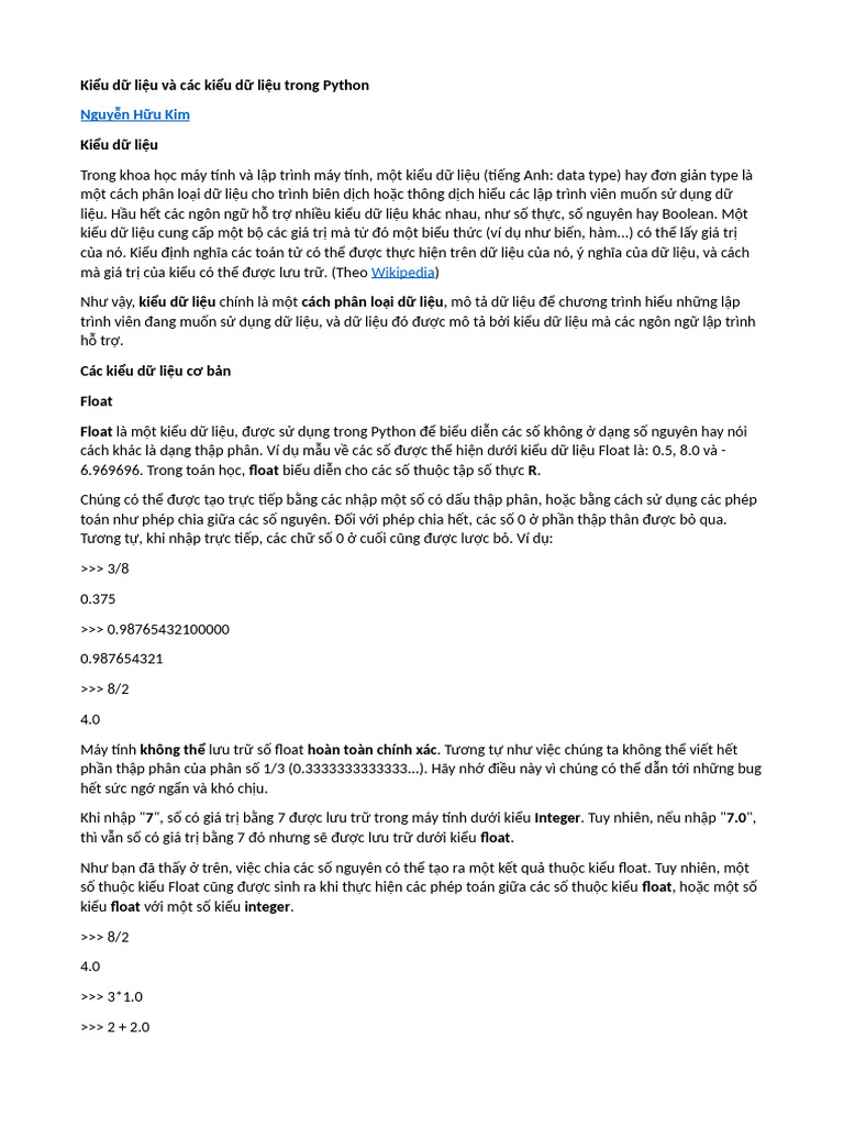 Học Python Cùng Tôi (3) Kiểu Dữ Liệu Và Các Kiểu Dữ Liệu Trong Python | PDF