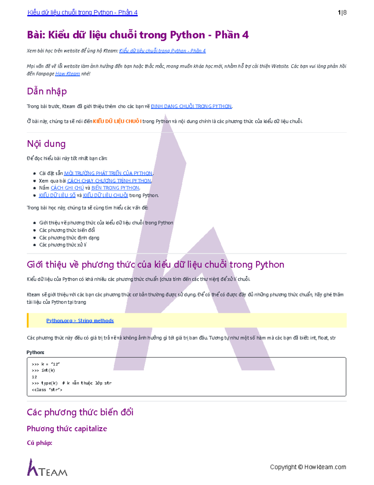 Kiểu Dữ Liệu Chuỗi trong Python - Phần 4: Phương Thức và Ứng Dụng - Studocu
