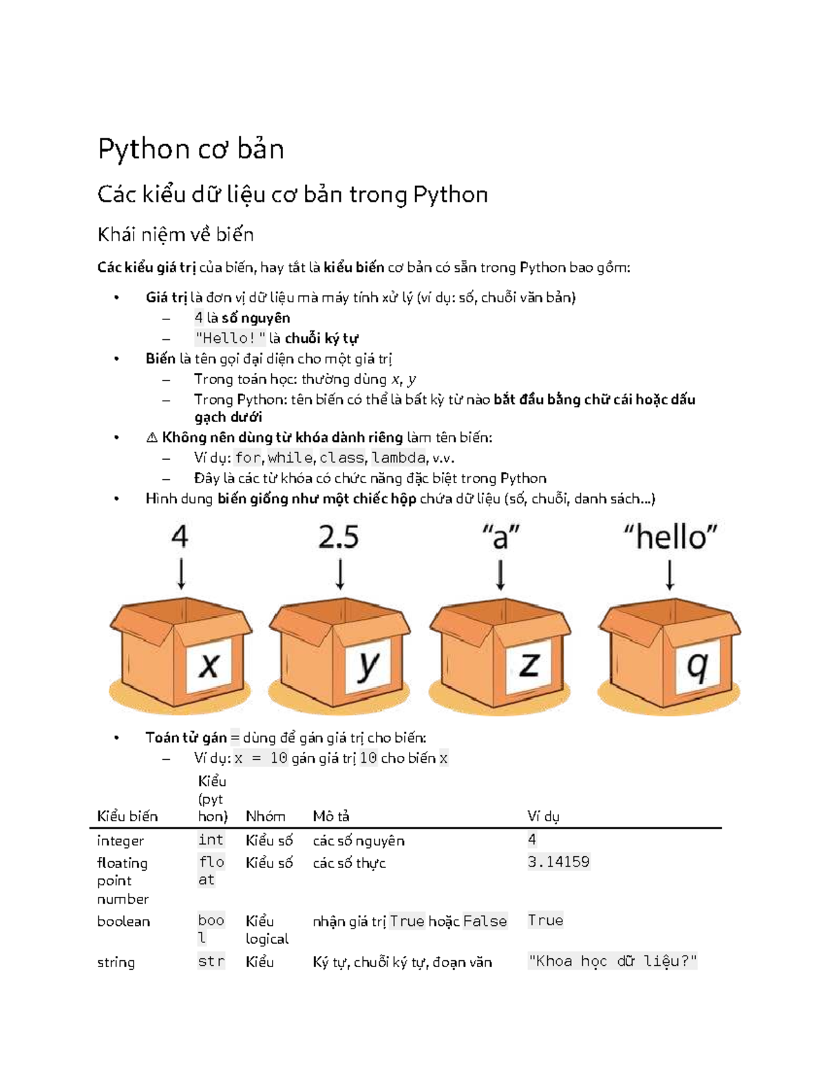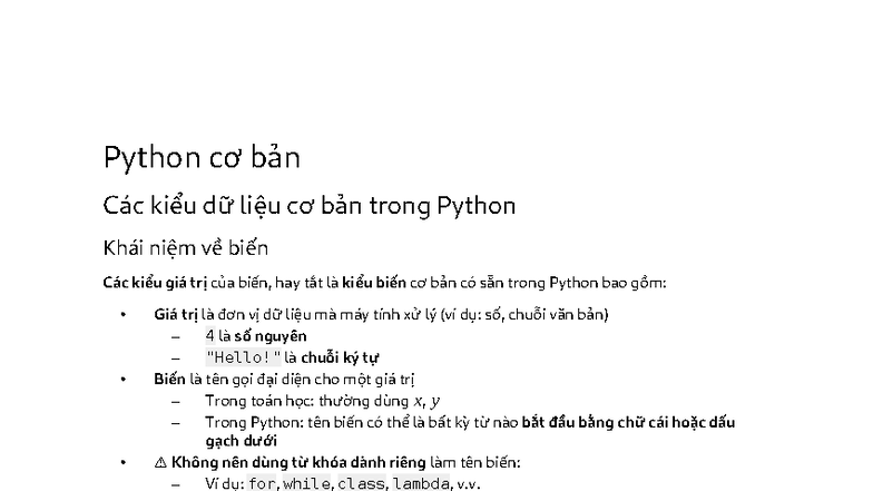 Python Cơ Bản: Kiểu Dữ Liệu và Biến trong Python - Studocu