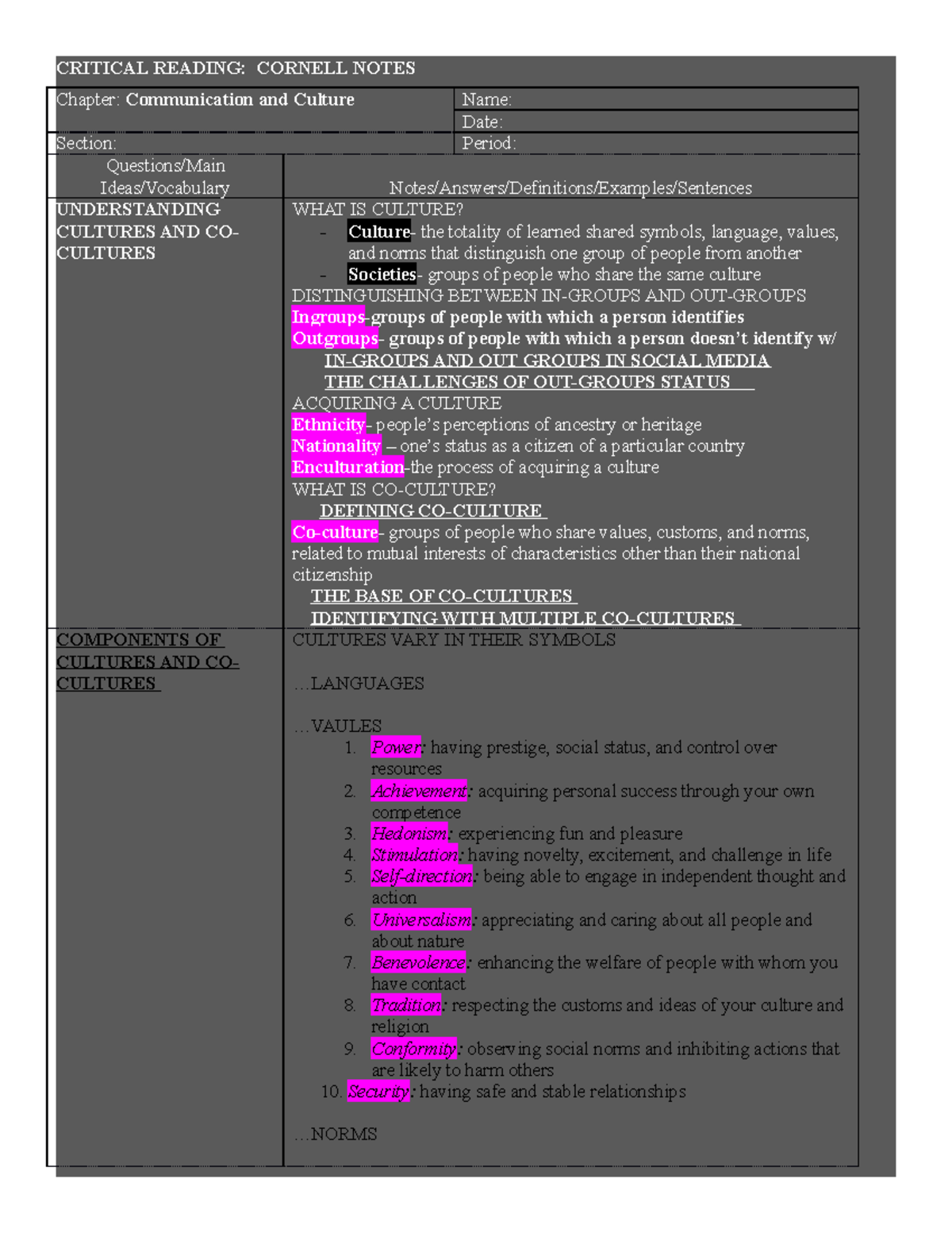 Chapter 5 Communication and Culture - CRITICAL READING: CORNELL NOTES ...