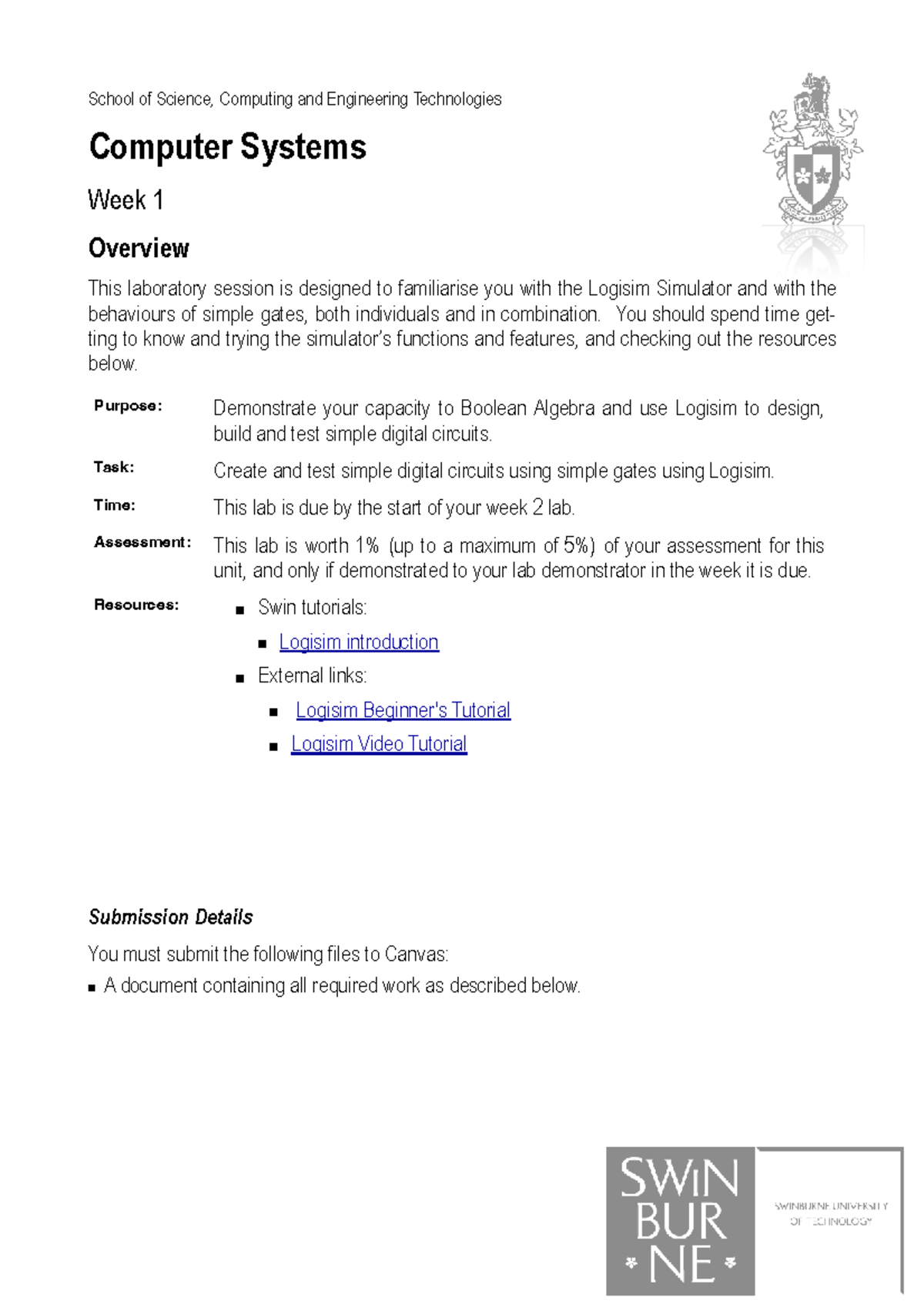 Computer Systems (CSE101) Week 1 Lab: Logisim Overview and Tasks - Studocu