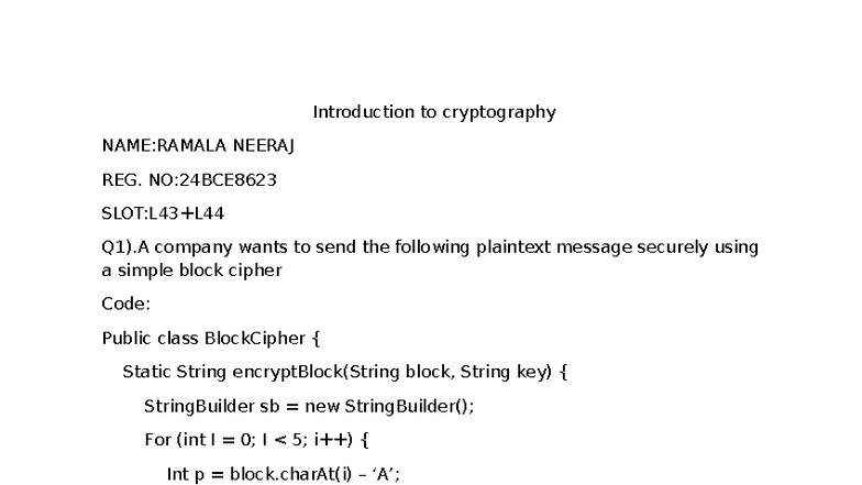 Cryptography Basics: Assignment-03 (CSE101) - Studocu