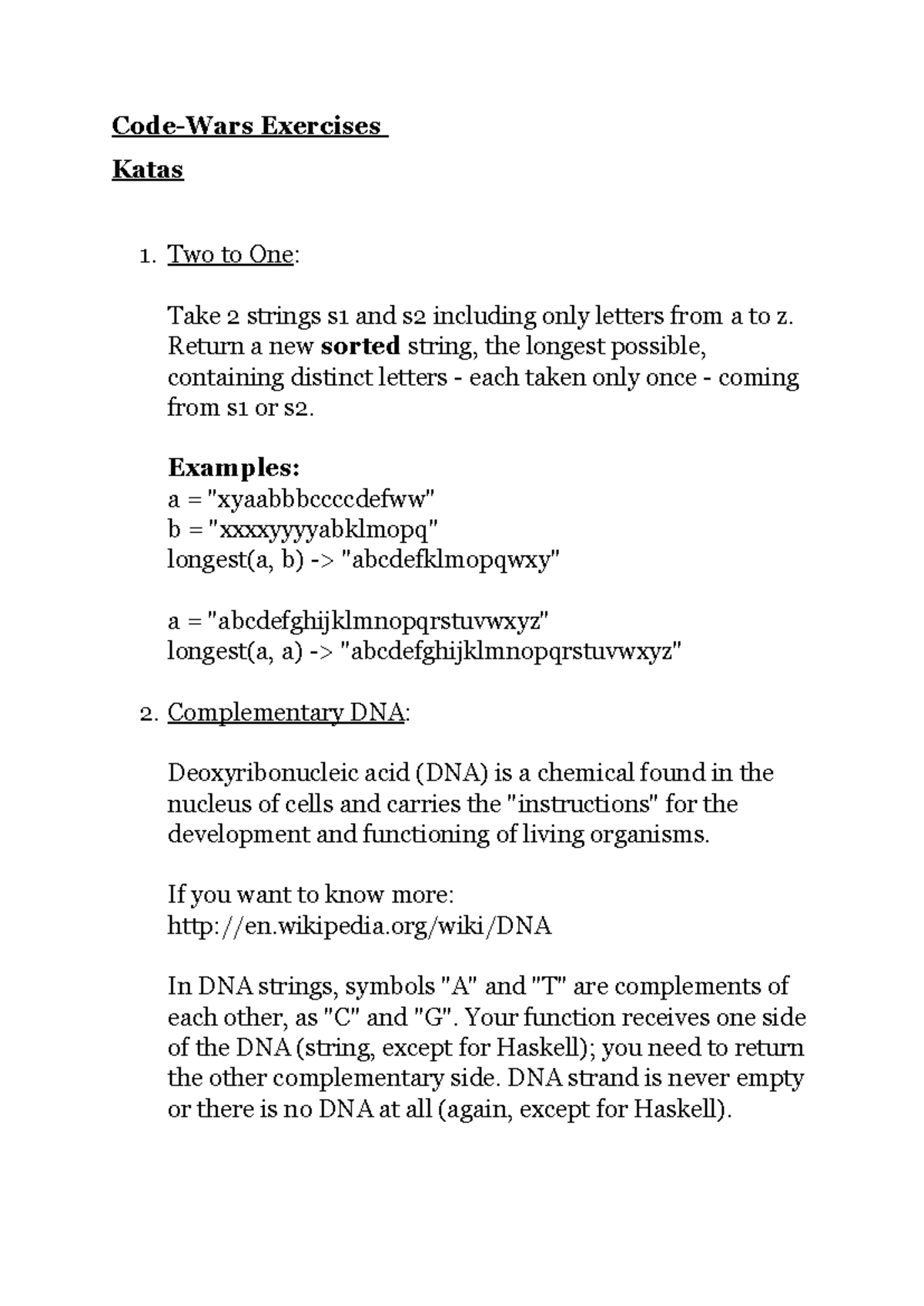 Coding Practice: Code-Wars Exercises and Solutions (CSE101) - Studocu