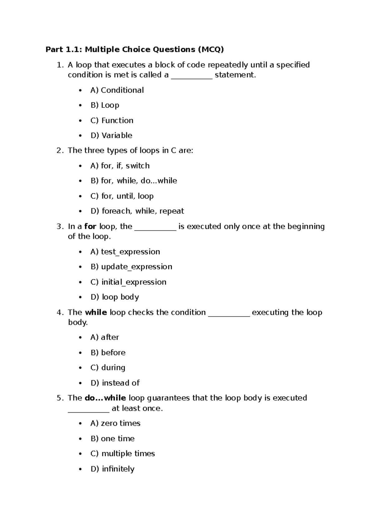 CSE101: Loop Array Exercises - MCQs on Loop Concepts and Types - Studocu