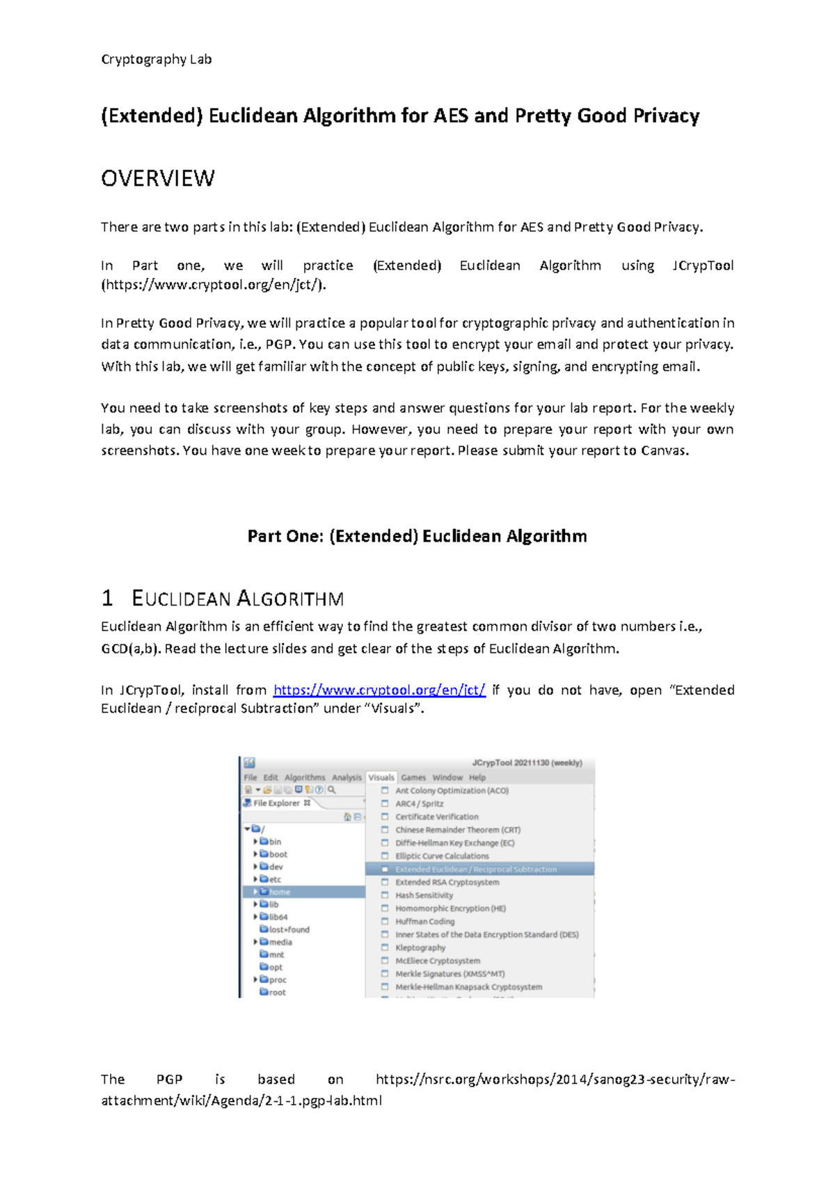 Lab Practice on (Extended) Euclidean Algorithm & PGP - CSE101 - Studocu