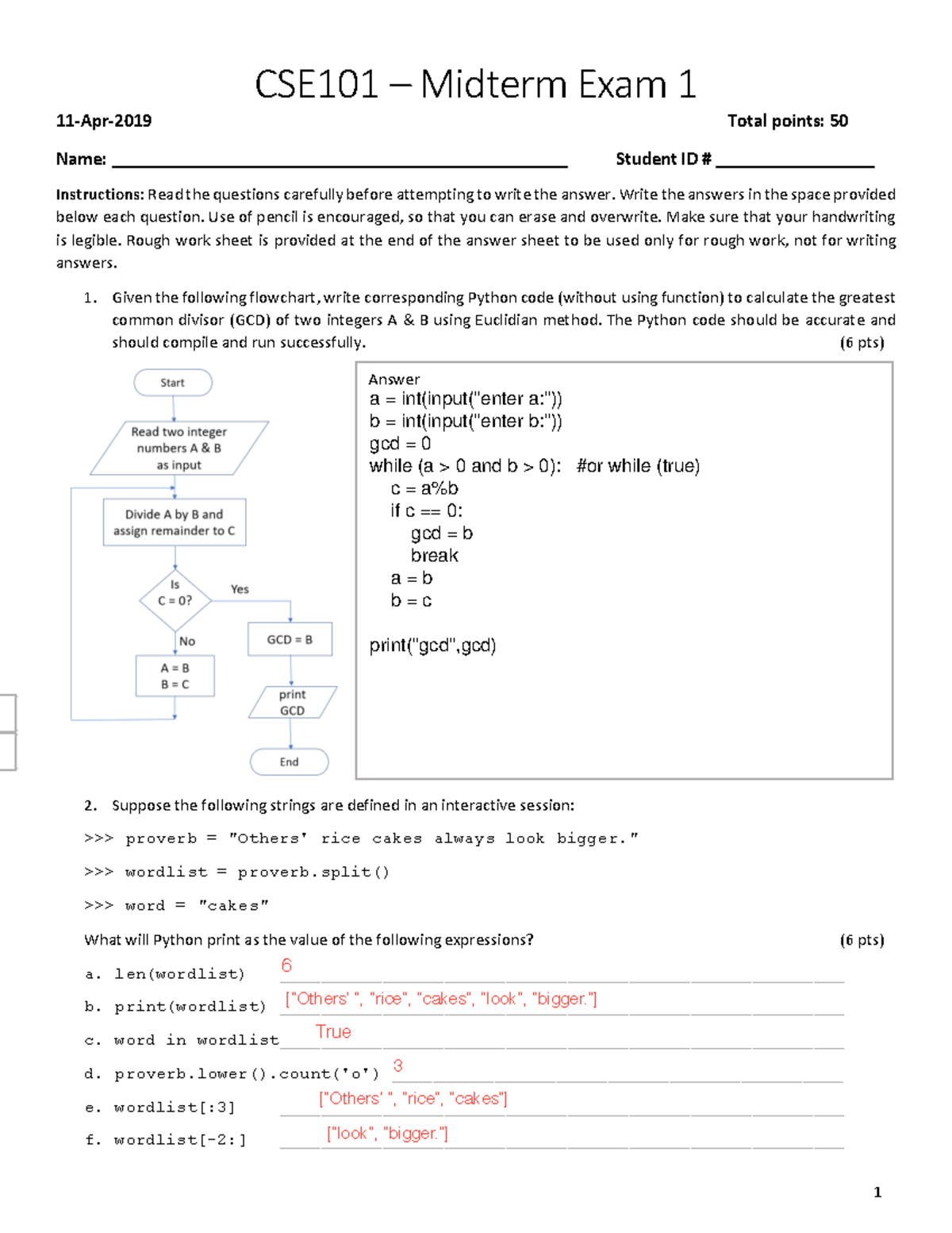 CSE101-Midterm 1 Solutions with Coding Exercises & Answers - Studocu
