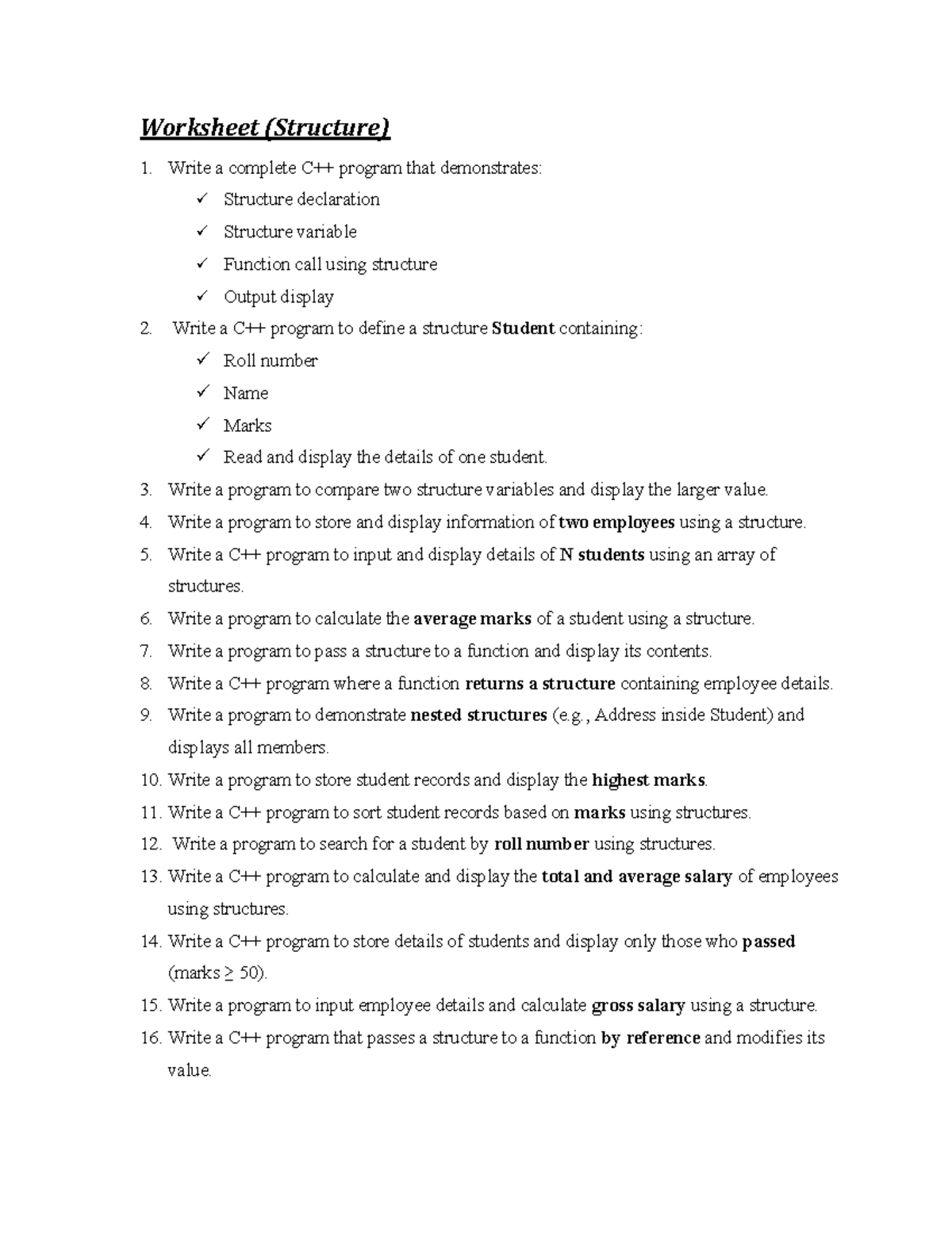 CSE101: Structure Programming Worksheet and Exercises - Studocu